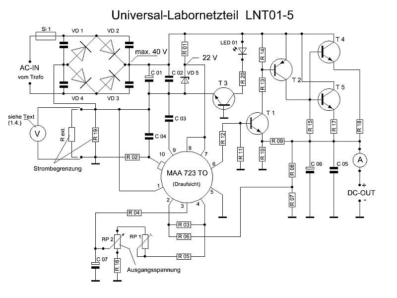 Dieser Bausatz ermöglicht in Verbindung mit einem geeigneten Netztransformator den Aufbau einer